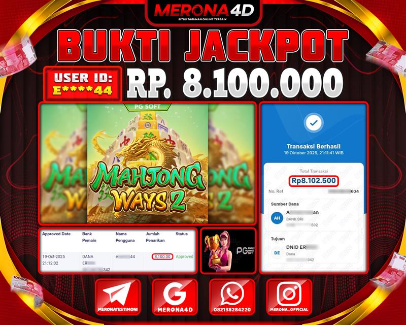 Selamat Kepada Member MERONA4D E*****44 Telah Jackpot Di MAHJONG WAYS 2
