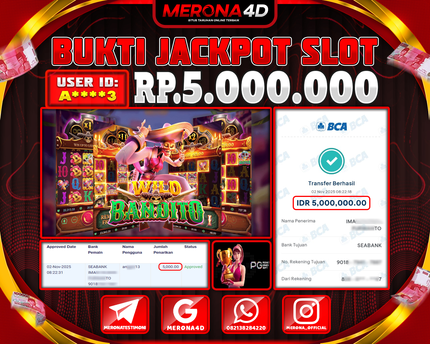 Selamat Kepada Member MERONA4D Aβ­‘οΏ½***οΏ½β­‘3 Telah Jackpot Di WILD BANDITO