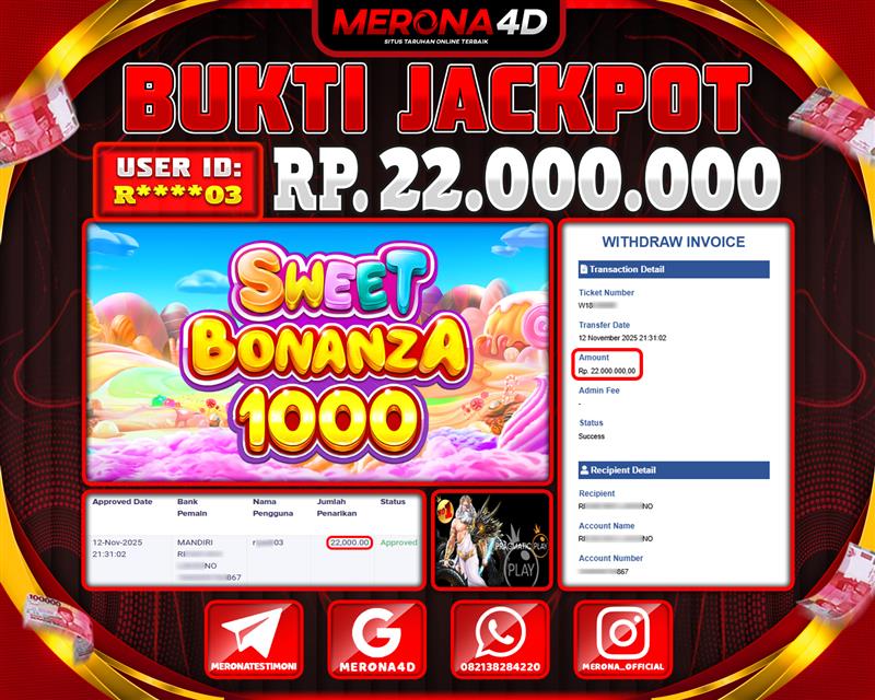 Selamat Kepada Member MERONA4D R*****03 Telah Jackpot Di SWEET BONANZA 1000