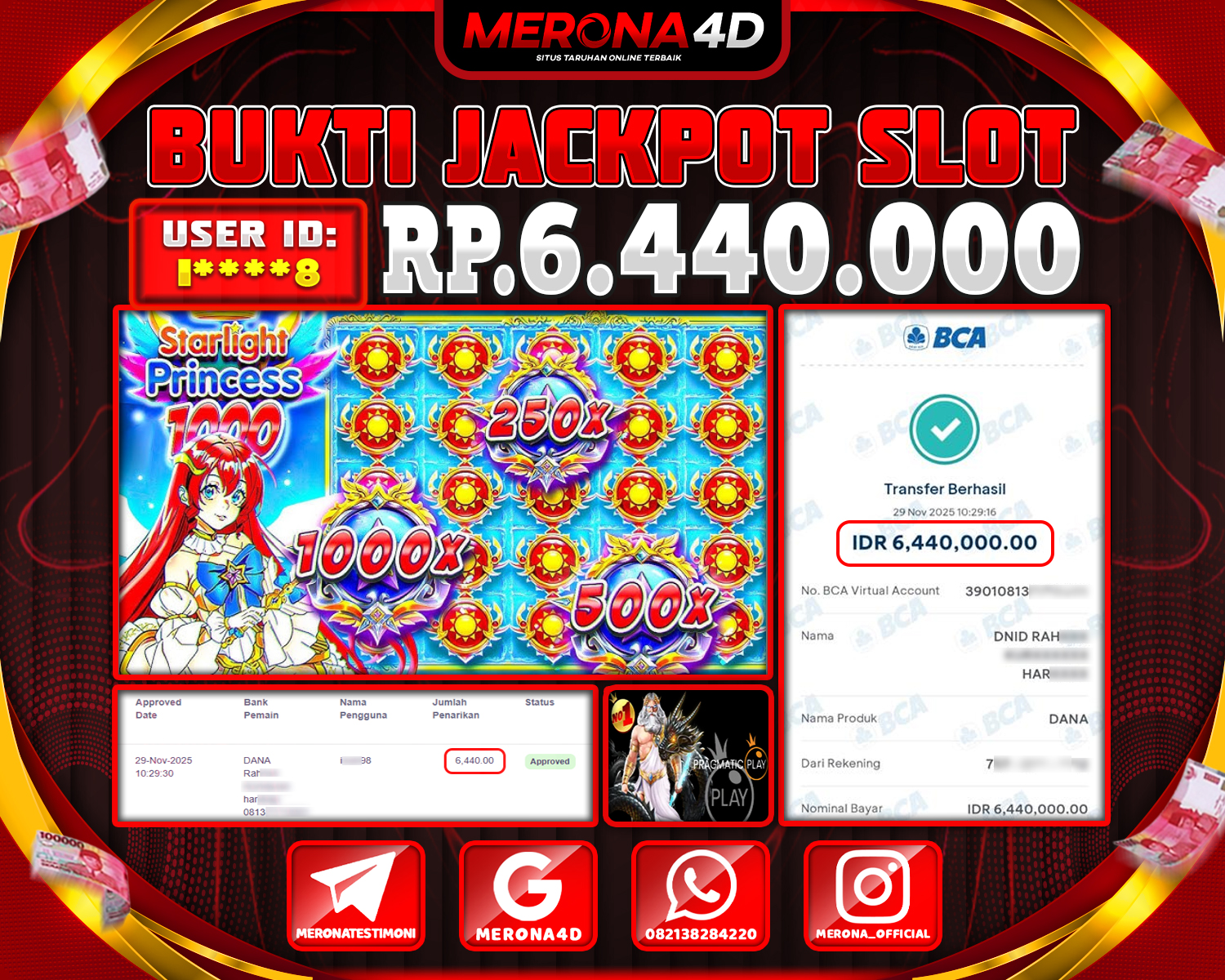 Selamat Kepada Member MERONA4D I****8 Telah Jackpot Di STARLIGHT PRINCESS 1000