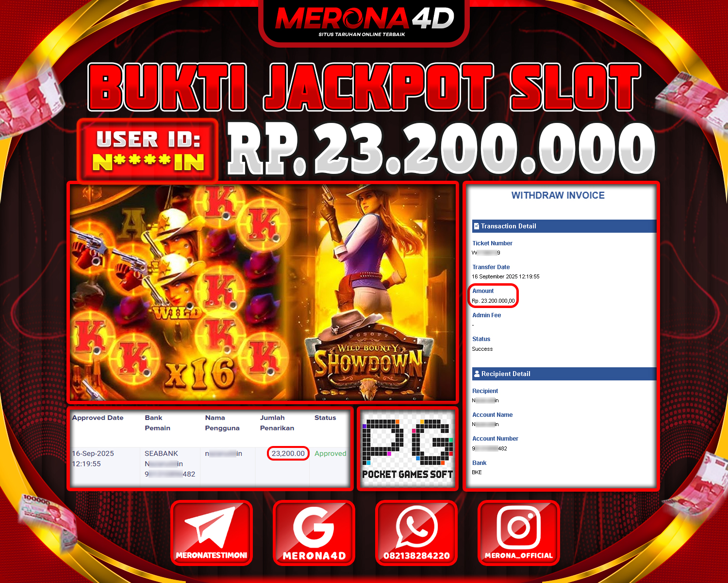 Selamat Kepada Member MERONA4D N*****N Telah Jackpot Di WILD BOUNTY SHOWDOWN