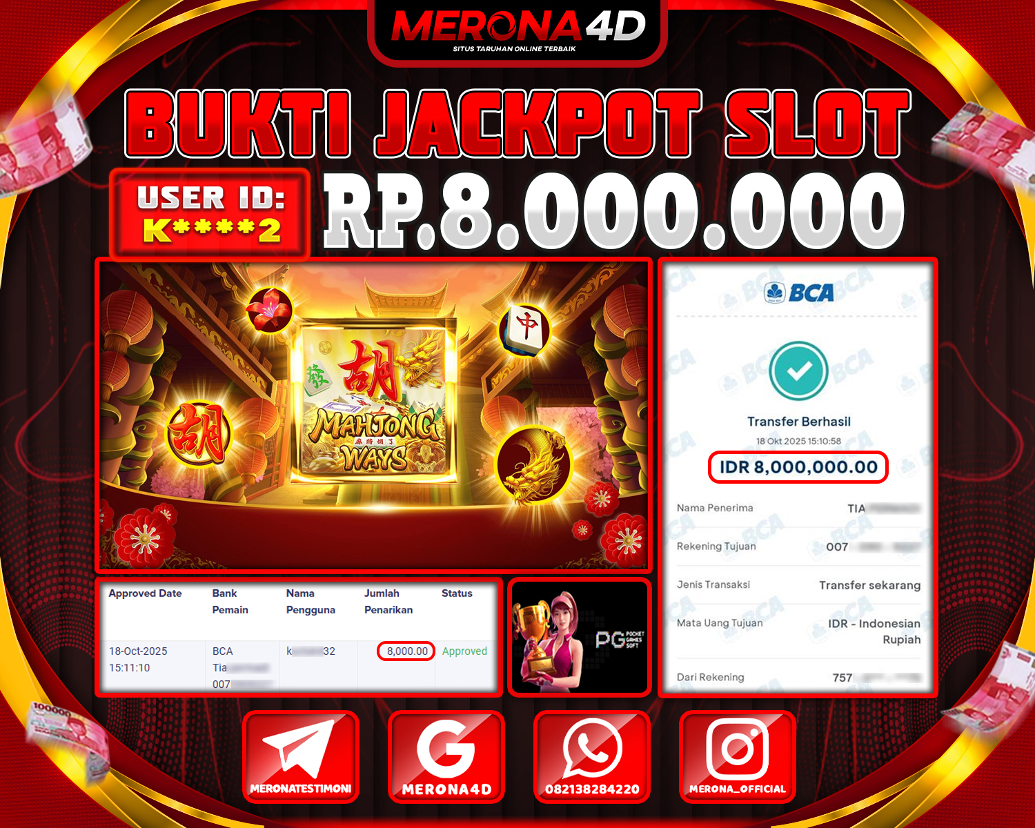 Selamat Kepada Member MERONA4D Kβ­‘οΏ½***οΏ½β­‘2 Telah Jackpot Di MAHJONG WAYS