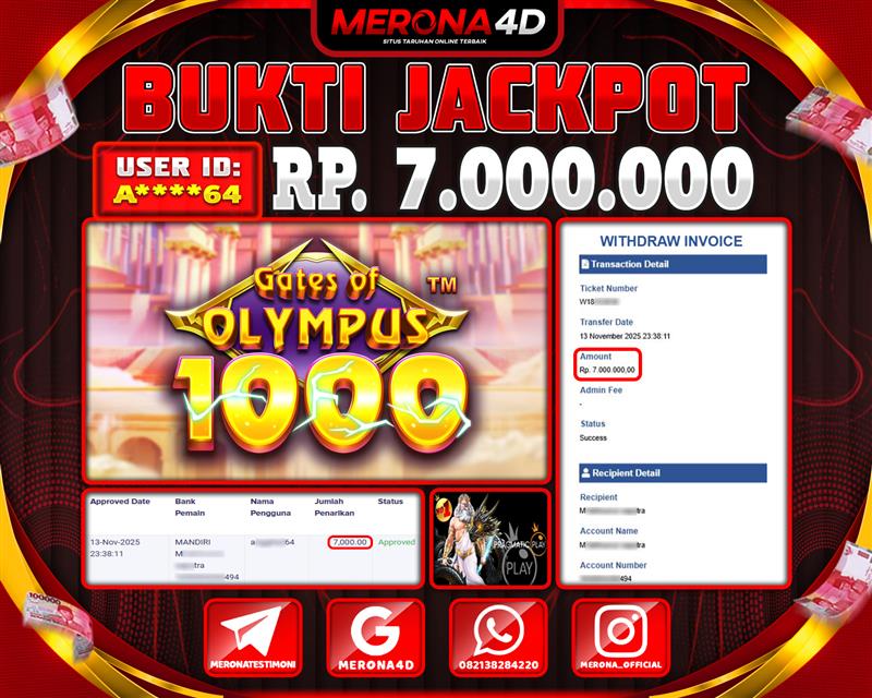 Selamat Kepada Member MERONA4D Rβ­‘οΏ½***οΏ½β­‘5 Telah Jackpot Di GATES OF OLYMPUS 1000
