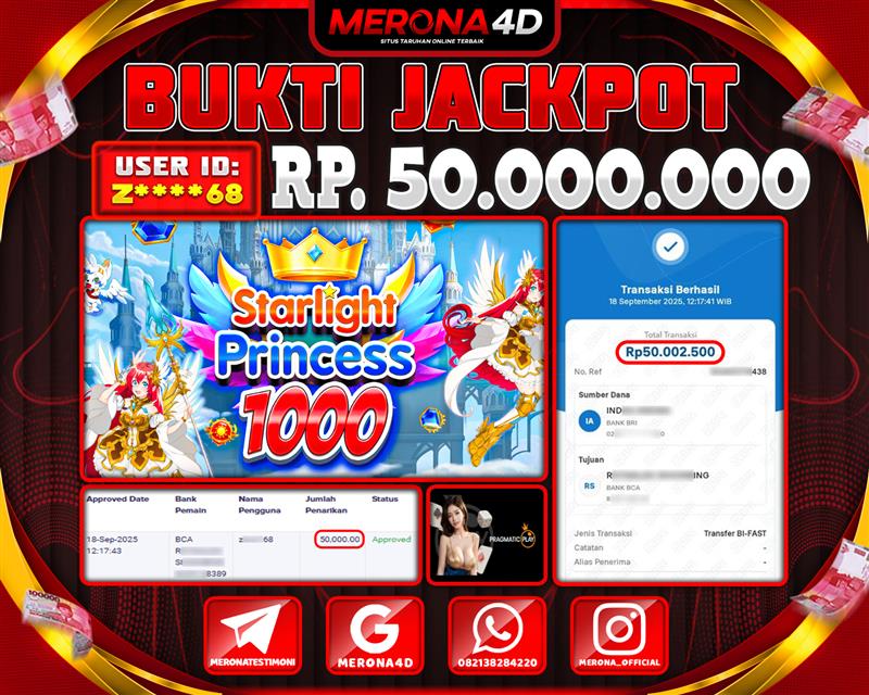Selamat Kepada Member MERONA4D Z*****8 Telah Jackpot Di STARLIGHT PRINCESS 1000