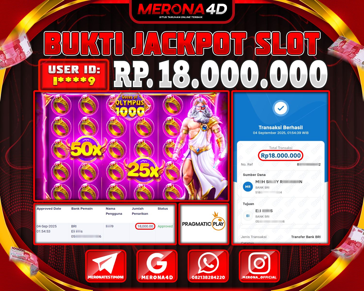 Selamat Kepada Member MERONA4D I****9 Telah Jackpot Di GATES OF OLYMPUS 1000