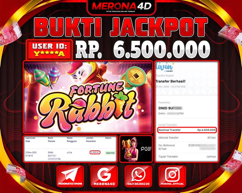 Selamat Kepada Member MERONA4D Y*****A Telah Jackpot Di FORTUNE RABBIT