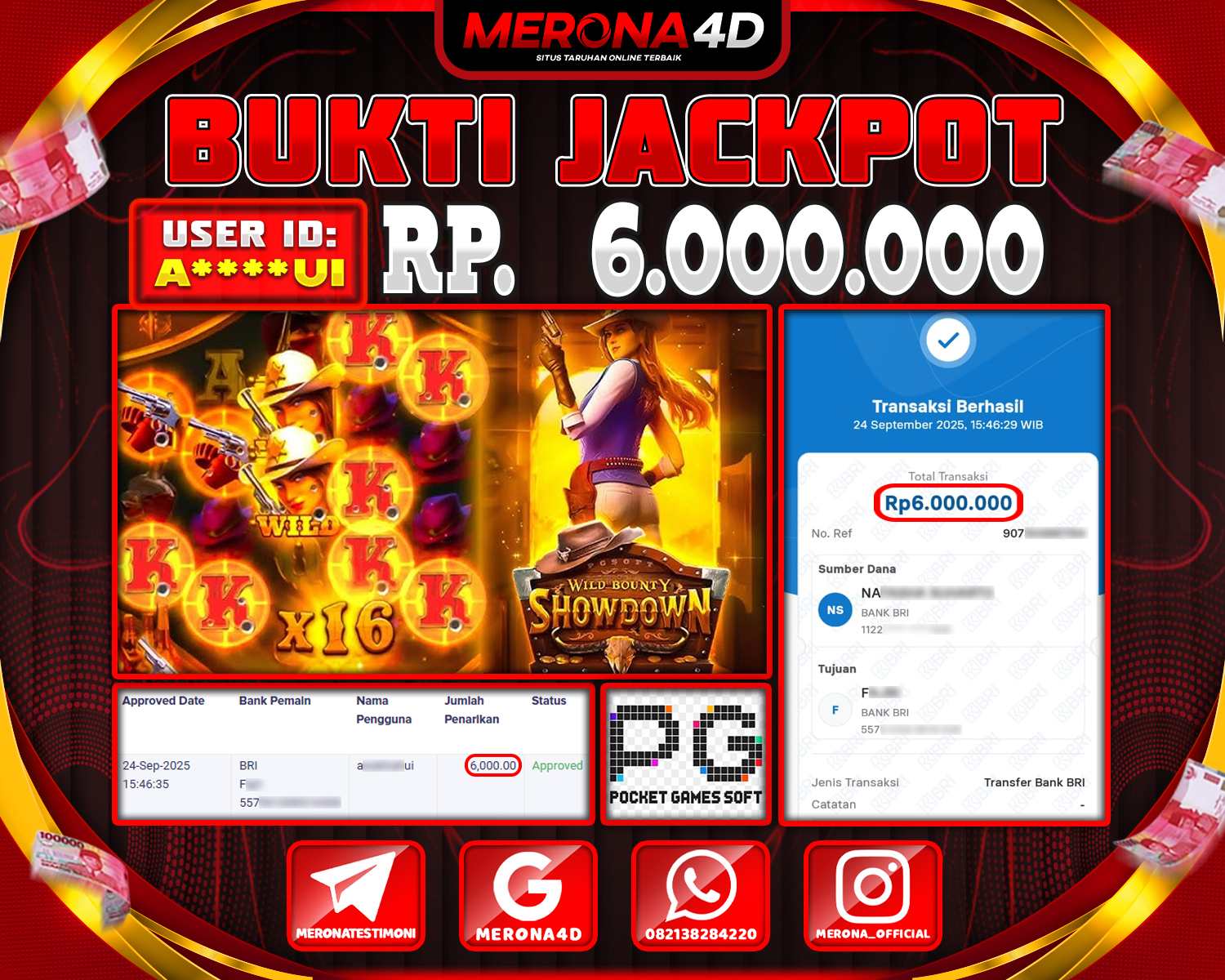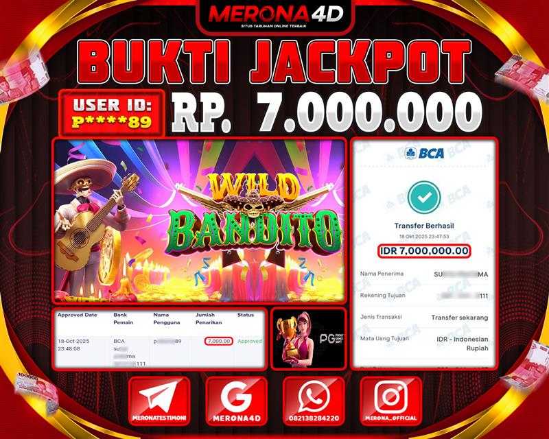 Selamat Kepada Member MERONA4D P*****89 Telah Jackpot Di WILD BANDITO