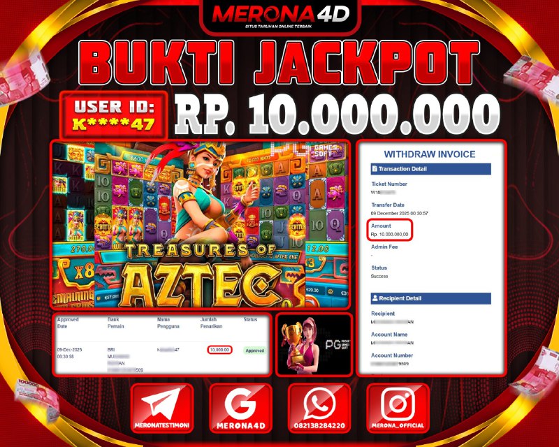 Selamat Kepada Member MERONA4D K*****47 Telah Jackpot Di TREASURES OF AZTEC