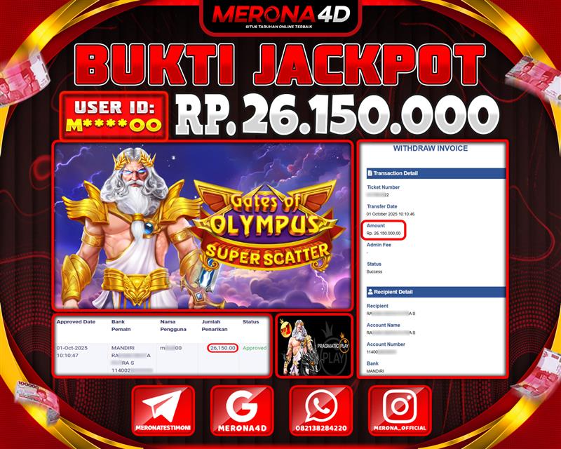 Selamat Kepada Member MERONA4D M****O Telah Jackpot Di GATES OF OLYMPUS SUPER SCATTER