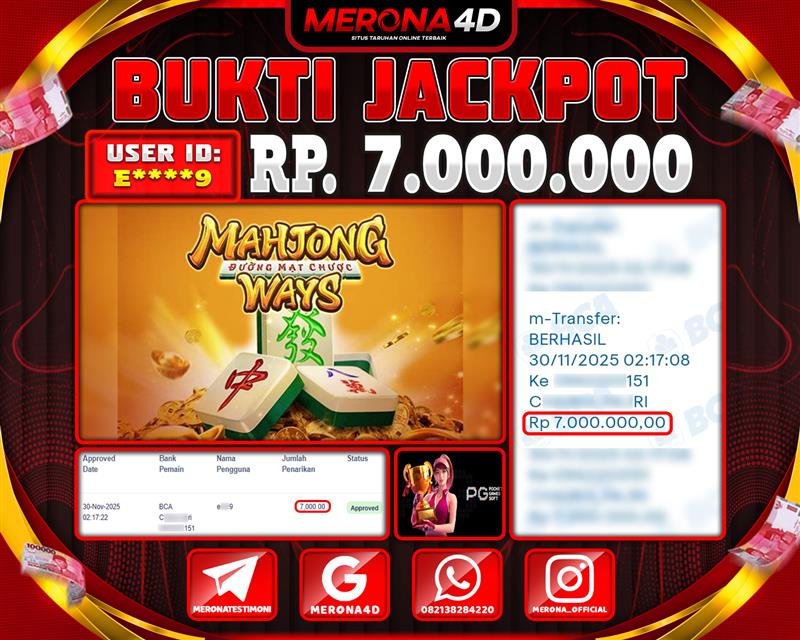 Selamat Kepada Member MERONA4D E*****9 Telah Jackpot Di MAHJONG WAYS