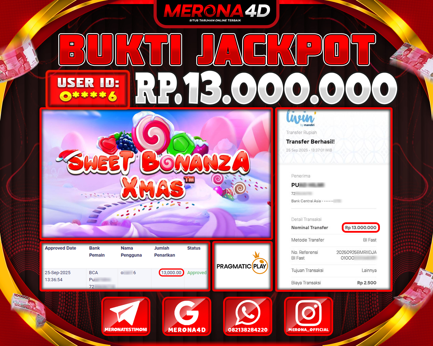 Selamat Kepada Member MERONA4D O**** Telah Jackpot Di SWEET BONANZA XMAS