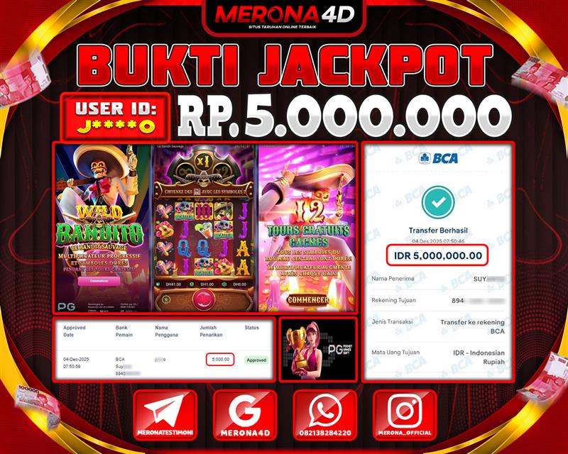 Ingin menang besar di game slot? MERONA4D menghadirkan ratusan slot dari provider ternama seperti Pragmatic Play, PG Soft, Habanero, dan lainnya. Nikmati fitur Buyspin, Free Spin, Scatter, dan Jackpot Progresif. Bonus harian dan event slot rutin siap menambah cuan Anda!